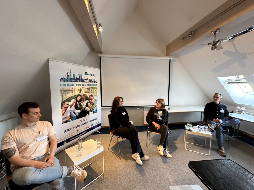 Nach einem Input zu den Ursachen des Erstarkens der extremen Rechten durch Jan Nowak von der Landeskoordinierungsstelle gegen Rechtsextremismus, thematisierten Jan Nowak, Dennis Forster von der Initiative gegen Rechts Regensburg und Sofija Pavlenko, Projektleiterin bei YouthBridge der Europäischen Janusz Korczak Akademie, in einer Podiumsdiskussion wie man im Konkreten die liberale Demokratie stärken könne. Besonders begeistern konnte das Projekt YouthBridge, in dem Jugendliche mit verschiedenen Migrationsgeschichten und religiösen Hintergründen zu Multiplikator*innen ausgebildet werden, um selbst Begegnungs- und Bildungsprojekte umzusetzen.